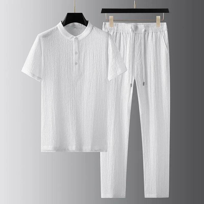 Men's Two-Piece Zip-Up Lapel T-Shirt and Shorts Set - Casual Summer Activewear