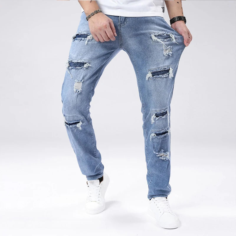 Men's Ripped Slim Fit Denim Jeans - Casual Slim Fit Pencil Pants for Men