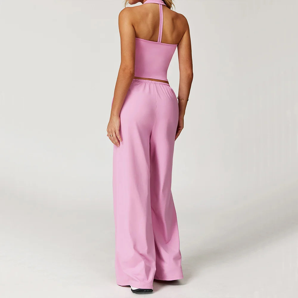 Women's High Waist Sweatpants and Cropped Vest Set – 2-Piece Stylish Activewear Outfit for Women