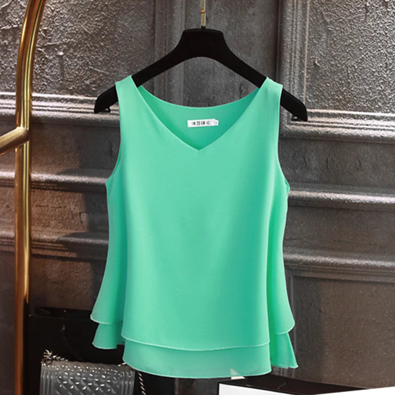 Sleeveless Chiffon V-Neck Blouse for Women - Various Colors
