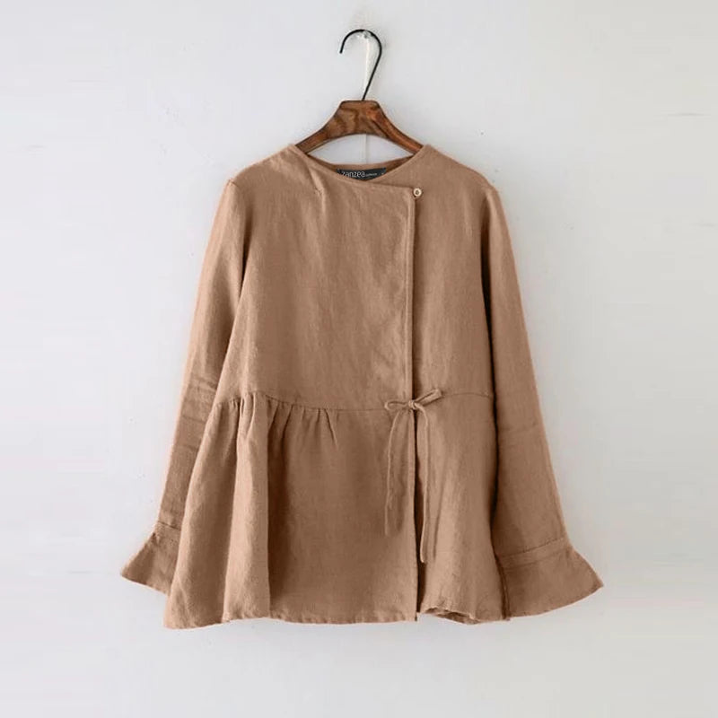 ZANZEA Vintage Women’s Long Flare Sleeve Cotton Blouse
