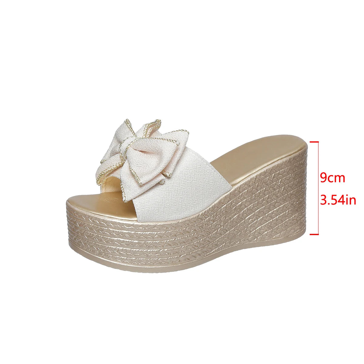 Elevate Your Style with Our Luxurious Women's Heeled Slides – Wedge Platform Slippers Featuring Elegant Butterfly Knot Decoration