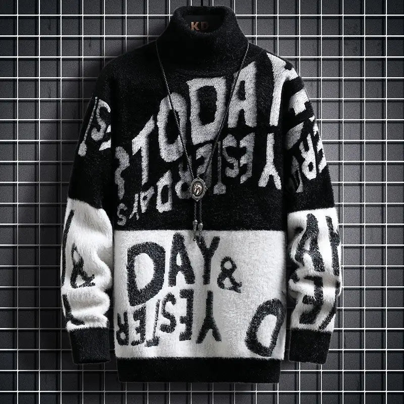 Men's Long Sleeve Turtleneck Sweater with Letter Print