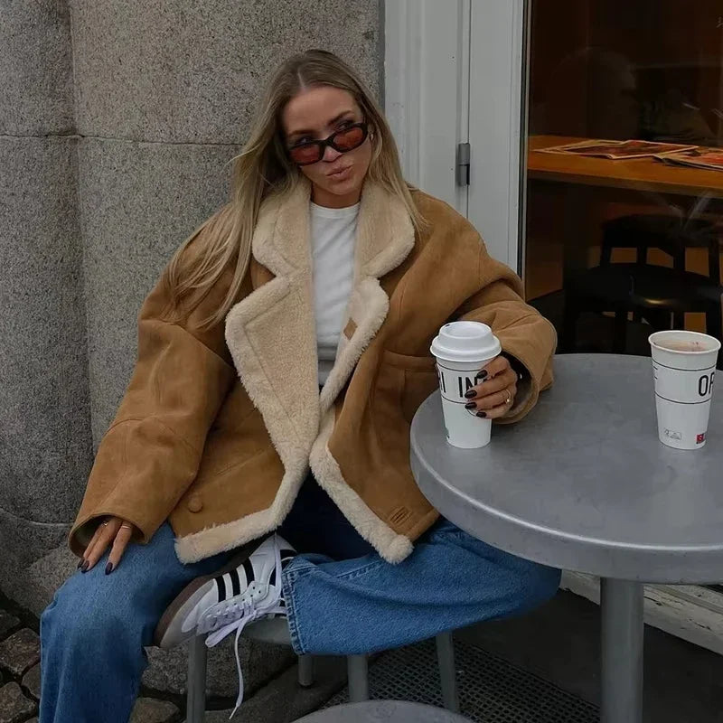 Women's Vintage Wool Lapel Jacket with Thicken Fabric and Pockets