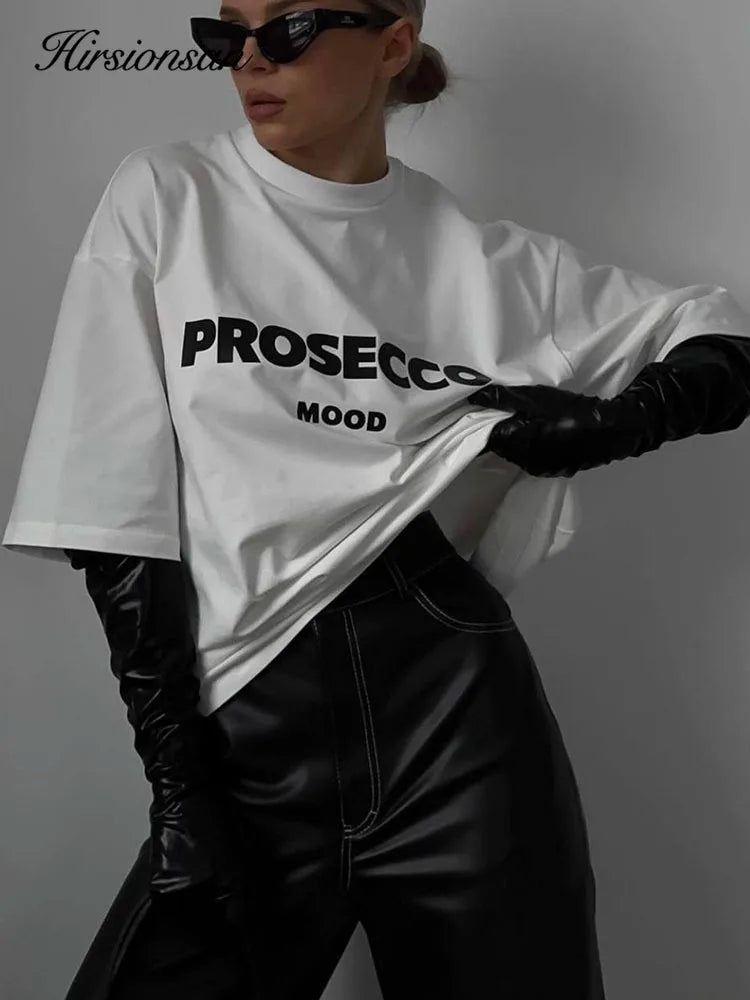 Cotton "Prosecco Mood" Print T-Shirt for Women - Casual Loose Fit Tee by Hirsionsan