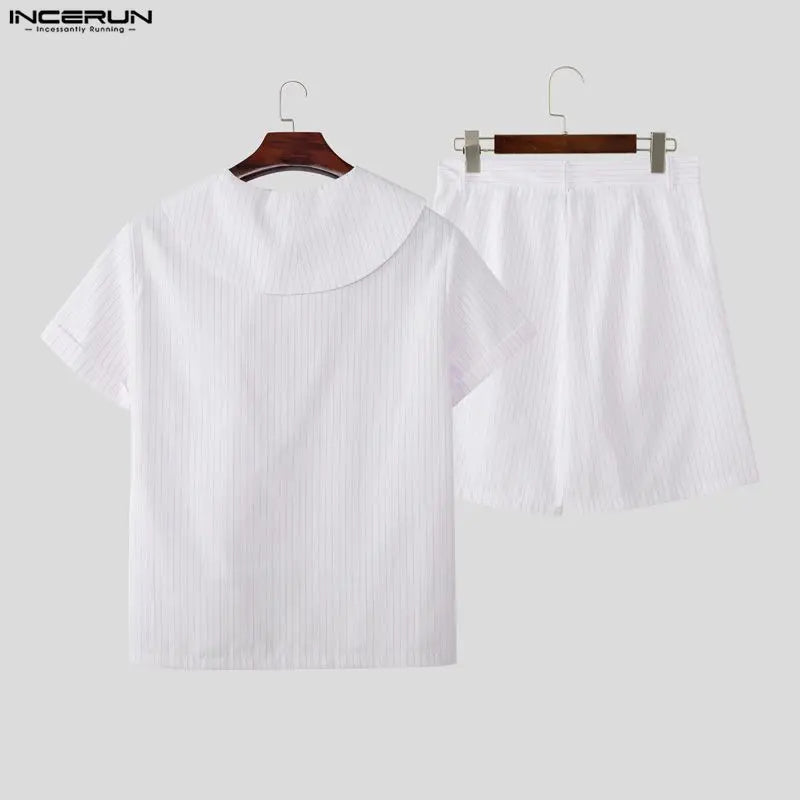- Luxurious Incerun Men's Two-Piece Striped Short Sleeve Shirt and Shorts Set for a stylish and sophisticated look