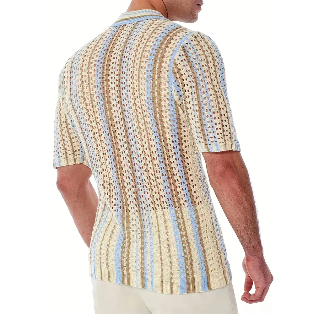 - Luxurious Men's Short Sleeve Mesh Lapel Shirt – Elevate your casual wardrobe with this stylish and sophisticated top
