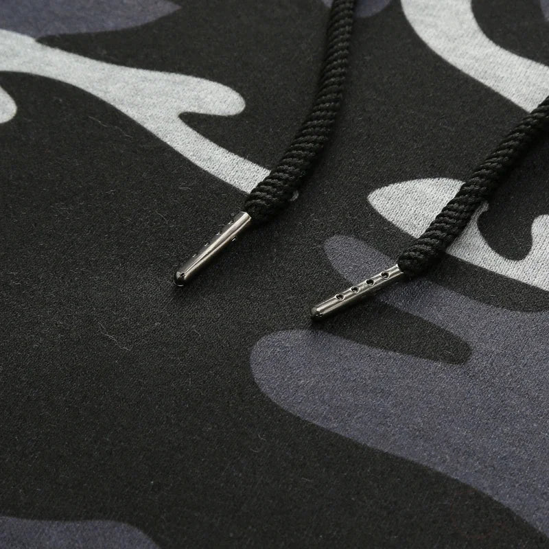 Elevate Your Wardrobe with Our Luxurious Men's Two-Piece Camo Hoodie & Drawstring Pants Set