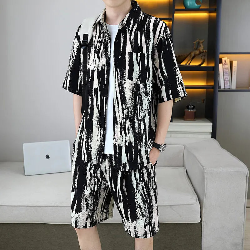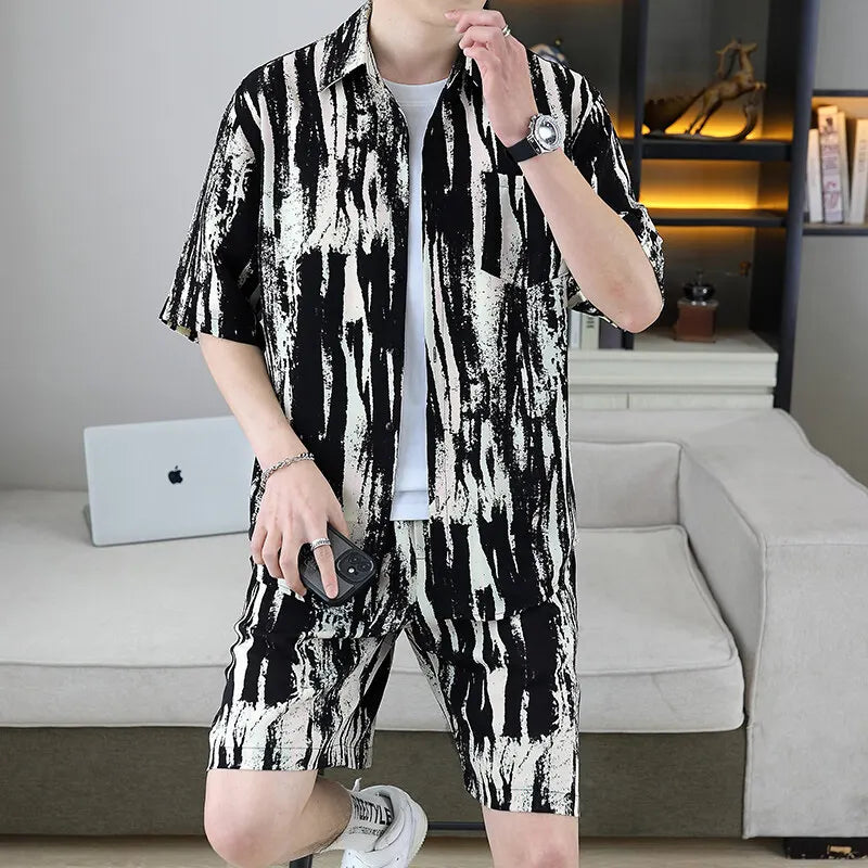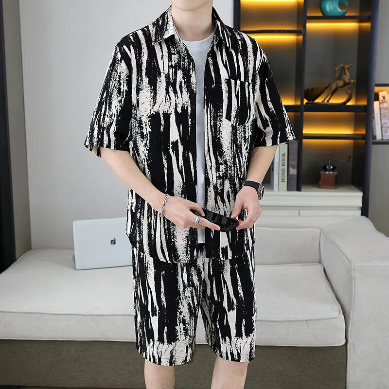 Upgrade your wardrobe with this luxurious men's striped shirt and shorts set—where comfort meets sophisticated casual style.