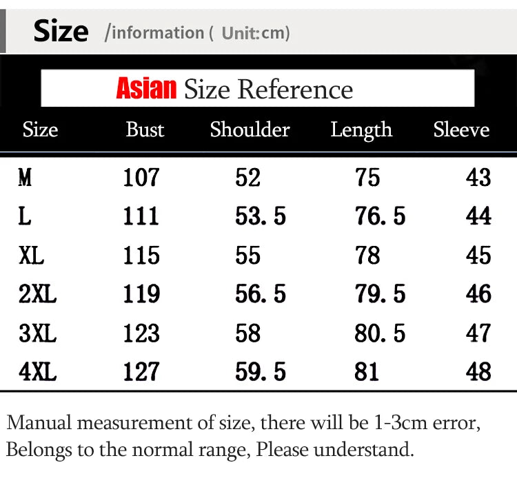 This is a Chinese sizing standard, which is approximately one to two sizes smaller than EU/US sizing. For example, if you typically wear an EU/US size L, we recommend selecting either an XL or XXL in our sizing.