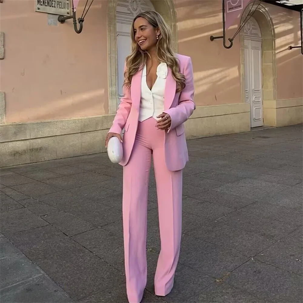Step into a world of sophisticated style with our luxurious Women's Blazer and Wide-Leg Pants Set. This meticulously crafted two-piece ensemble is designed to elevate your wardrobe, offering unparalleled versatility for both your professional pursuits and chic casual moments. Experience the ultimate blend of comfort and couture with this statement-making suit.