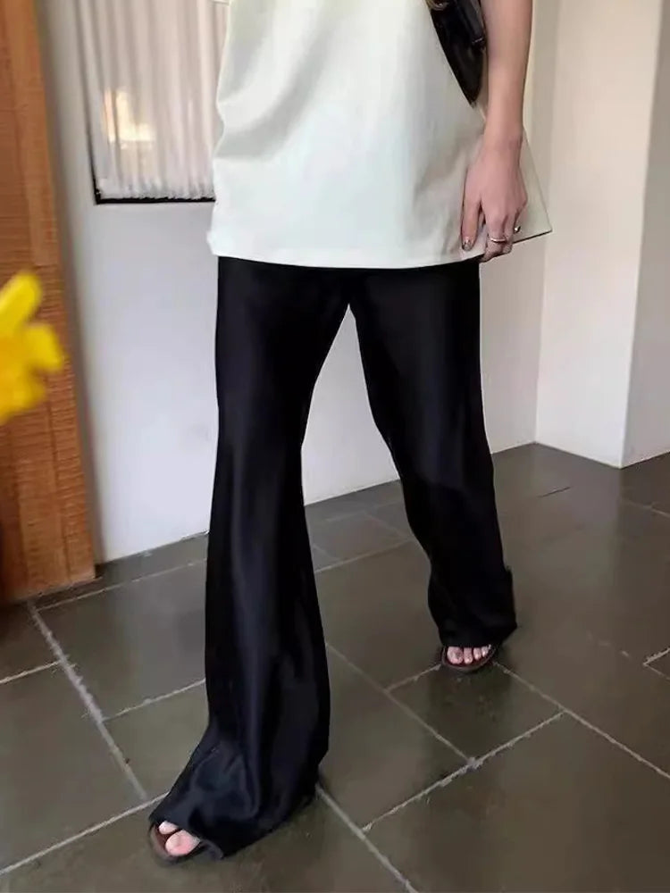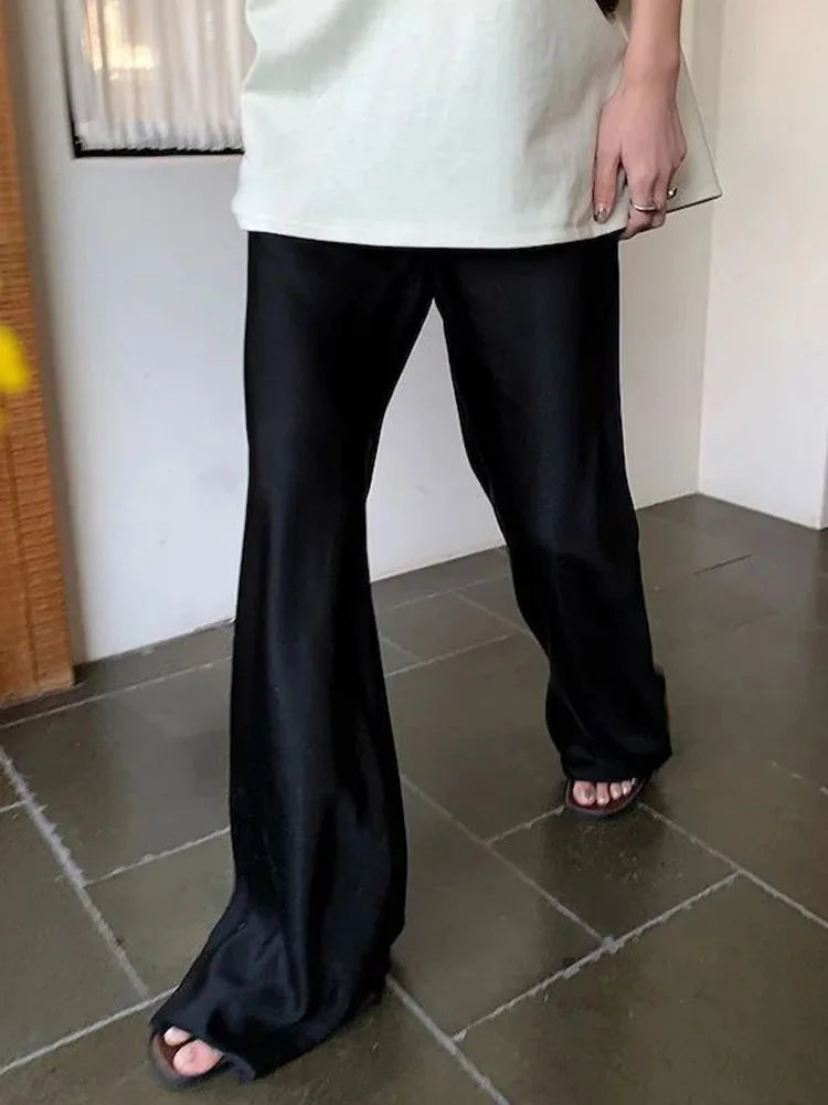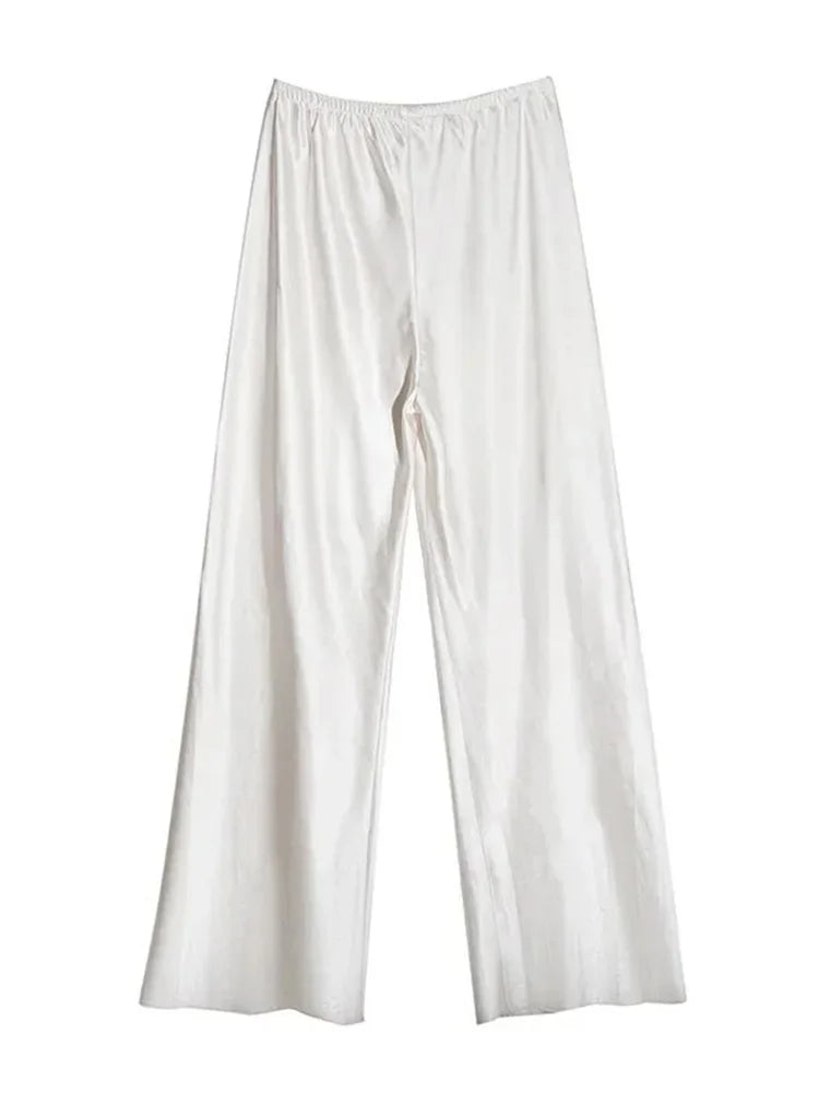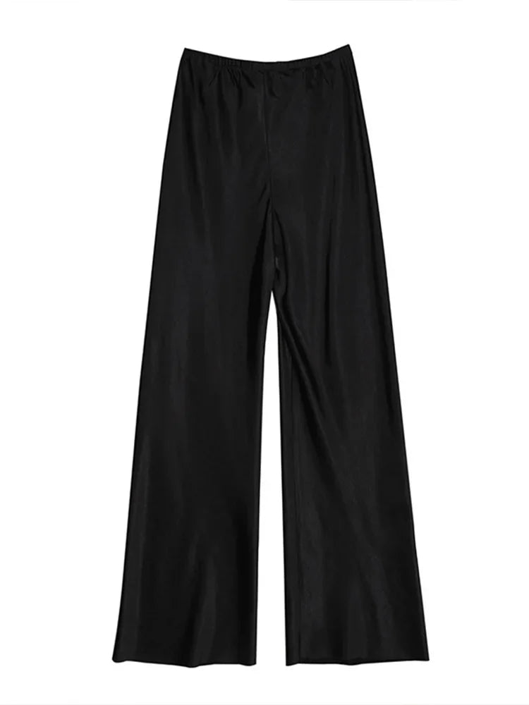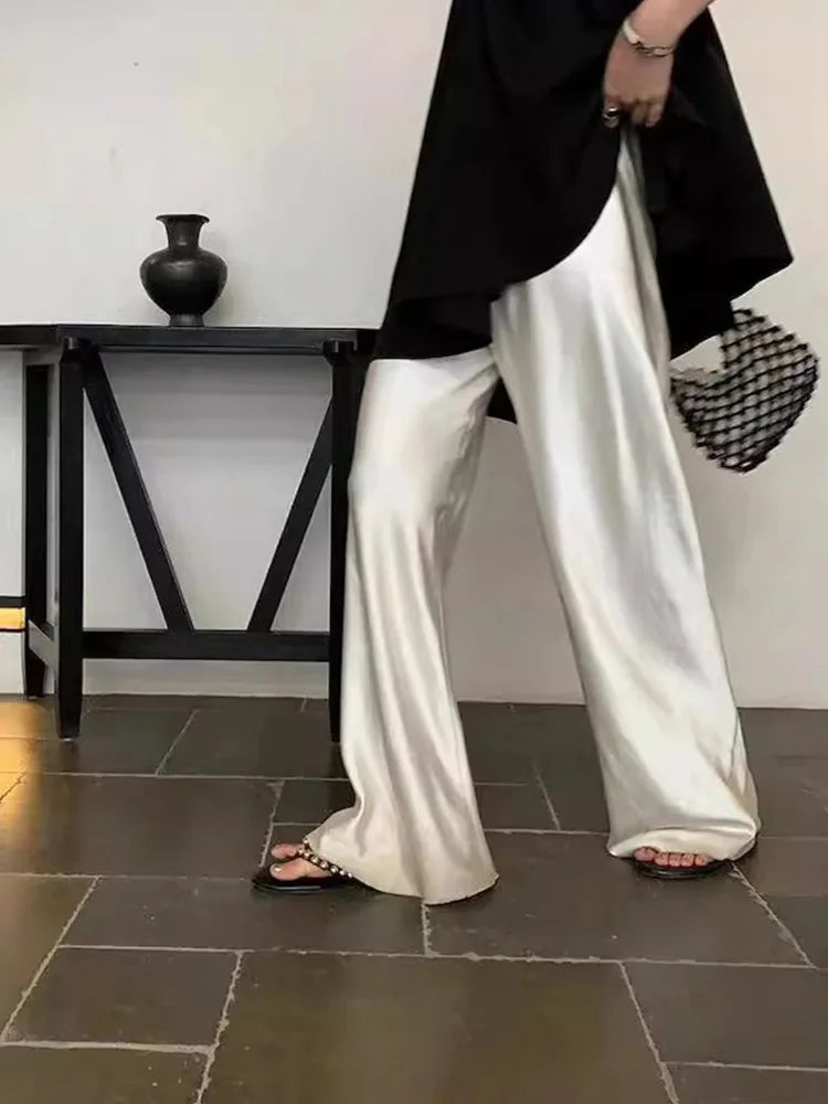 Indulge in Elegance with Our Women's Satin Wide Leg Casual Floor-Length Pants