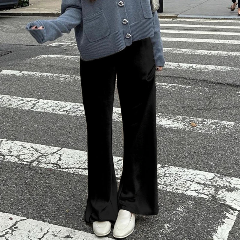 Women's Satin Wide Leg Pants - Casual High Waist Elastic Waistline