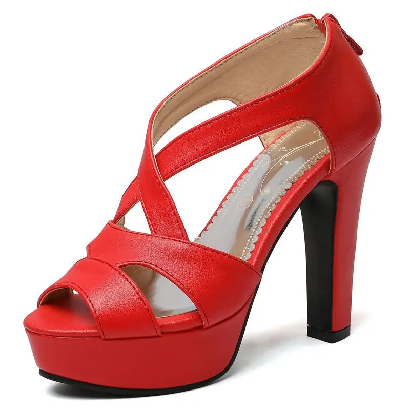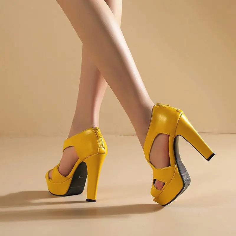Women's Peep Toe Sandals with 12cm Platform & 3.5cm High Heels – Zipper Closure, Stylish High Heel